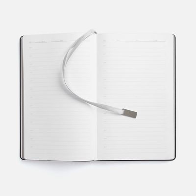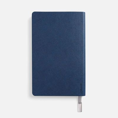 Ежедневник с гибкой обложкой, выполнен из материала Petrus, синий НН, дополнен серым ляссе с металлическим шильдиком.