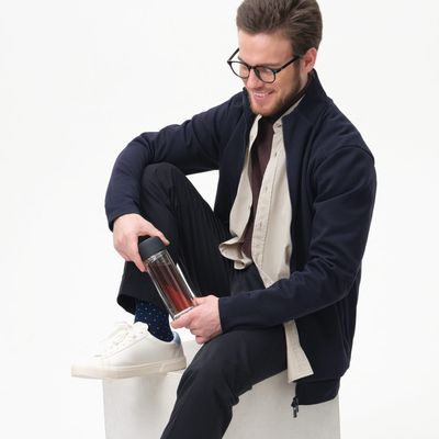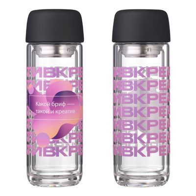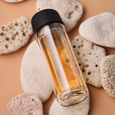 Стеклянная бутылка с двойными стенками позволит носить свежезаваренный чай с собой. Ситечко позволит заварить чай прямо в бутылке.