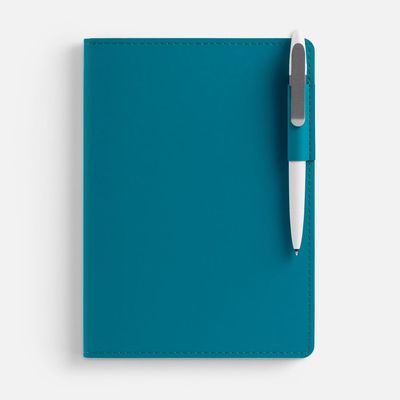 Ежедневник с гибкой обложкой из двух слоев материала Soft Touch, зеленый FF, дополнен петелькой для ручки из покровного материала, капталом и ляссе зеленого цвета,закрашенным срезом обложки в цвет материала.