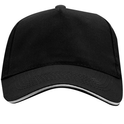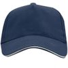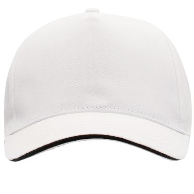 5-панельная бейсболка сэндвич с контрастными деталями. Козырек с 6 отделочными строчками. Четыре вентиляционных отверстия. Внутренняя лента для защиты от пота. Размер регулируется с помощью застежки на липучке велькро.