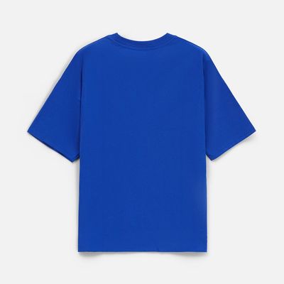 Футболка унисекс прямого кроя со спущенным плечом.