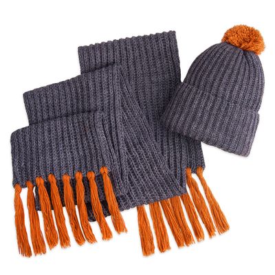Мягкий, пушистый и уютный комплект из шарфа и шапки поможет согреться вам в холодное время года. Стильный меланжевый темно-серый цвет в средневековой Франции означал огромную власть. В те времена вся знать в основном одевалась в графитовые тона. Недаром, родилось выражение «серый кардинал». Почувствуйте магическое влияние серого цвета в сочетании с яркой отделкой!Цвет помпона и кисточек близкий к Pantone 201C