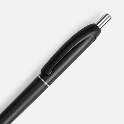 Шариковая пластиковая ручка в корпусе с эффектом «металлик» и серебристыми деталями. Приятная округлая форма клипа добавляет ручке плавности и объема.