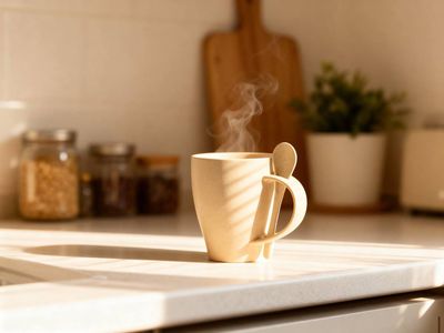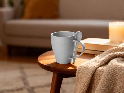 Кружка «Nina» состоит из смеси ПП-пластика (50%) и переработанной пшеницы (50%), что делает ее настоящим экомерчем. Поверхность кружки имеет приятный бежевый оттенок с небольшими вкраплениями-точками темно-серого цвета, которые только подчеркивают природное происхождение «Nina». В остальном — и тактильно, и внешне, и по своим качествам — кружка не отличается от обычной пластиковой: ее тоже нельзя использовать в посудомойке и микроволновой печи, а также заливать напитки температурой выше 100 градусов Цельсия. Объем «Nina» — 300 мл, что является самым, пожалуй, популярным вариантом: кружка не слишком маленькая, не слишком большая, а в самый раз.