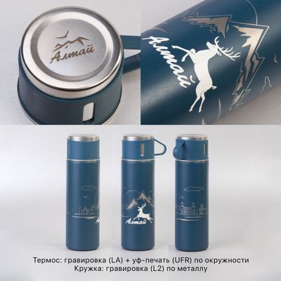 Набор подарочный "Алтай": термос, 3 кружки, пудра