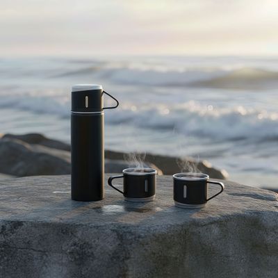 Набор подарочный "Алтай": термос, 3 кружки, пудра, черный