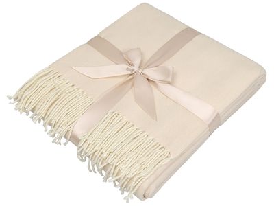 Большой размер этого мягкого плотного пледа позволяет использовать его как одеяло и как покрывало, украшающее интерьер. По бокам плед украшен бахромой. В комплекте идет упаковочная серая лента, на которой можно сделать нанесение.