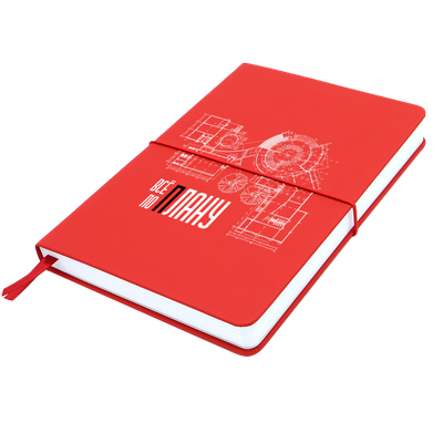 Блокнот А5-формата жёсткой обложке со специальным гладким покрытием. Материал обложки — полиуретан. Карман в нахзаце, форзац, двойное ляссе, эластичная застёжка — всё комплиментарно цвету обложки. Размеры: 150*214*24 мм, 384 разлинеенные страницы / 192 листа, бумага плотностью 70г/м2. В кармане можно переносить визитки, купоны и т.д.