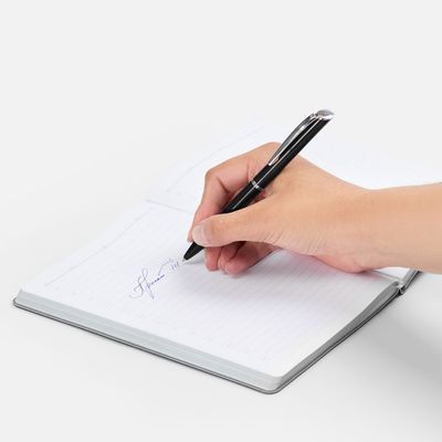 Классическая металлическая ручка с матовым покрытием и хромированными деталями.