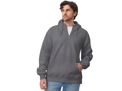 Худи с капюшоном ворот на молнии. Шнур в капюшоне с металлическими наконечниками. Отделка горловины спинки внутри тесьмой, Риб 2х2 по низу изделия и манжетам. Удобный карман кенгуру.