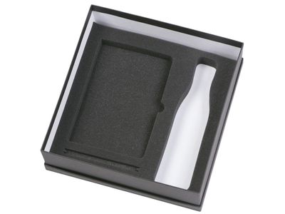 блокнот - искусственная кожа с покрытием soft-touch, ручка - пластик с покрытием soft-touch, термобутылка - нержавеющая cталь с покрытием soft-touch.