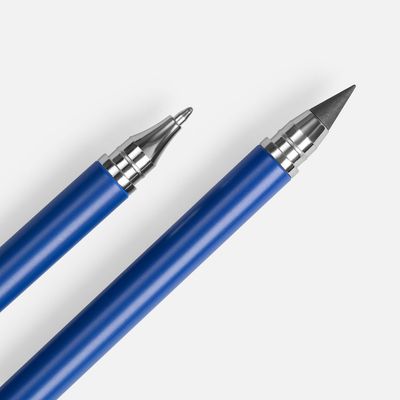 Изготовленный из сплава графита со свинцом долговечный наконечник карандаша не требует заточки, а закончившийся стержень в ручке легко заменить. Оба наконечника закрываются защитными колпачками.