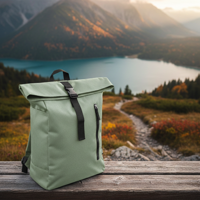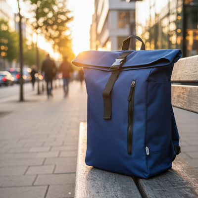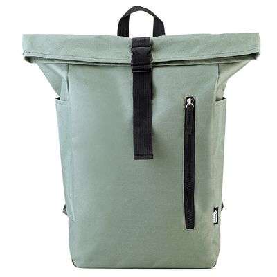 Городской ролл-топ рюкзак ARGON из переработранного полиэстера RPET. Одно основное отделение закрываеся на регулируемый по длине ремень c пряжкой-фастексом. На передней стенке вертикальный карман на молнии-тракторе. Два боковых открытых кармана. Короткая ручка и уплотнённые регулируемые по длине плечевые ремни. Уплотнённая задняя стенка. Размер: 27,5*44(52,5)*16cm Плотность: 600D Рекомендуемая максимальная нагрузка: не более 5 кг. Вместимость: 17 л.
