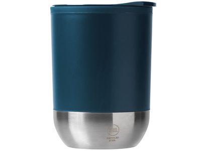 Термокружка с двойными стенками из переработанного полипропилена и дном из нержавеющей стали 304. В комплекте крышка-слайдер. Объём: 290 мл. Поставляется в экологичной коробке.