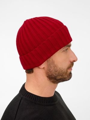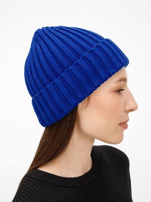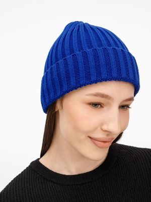 Однослойная шапка рельефной вязки с отворотом.