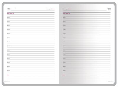 Недатированные страницы в серую линейку имеют отдельное место для проставления числа месяца и дня недели. Справочный блок на 17 страницах содержит полезную информацию из различных областей.