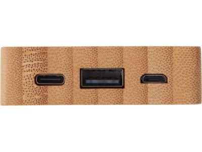 Компактный и стильный внешний аккумулятор ёмкостью 5 000 мАч — идеальный спутник для повседневных дел и коротких поездок. Его корпус сочетает в себе натуральный бамбук и переработанный ABS-пластик, что делает устройство не только более экологичным, но и визуально премиальным. Особый шарм ему придаёт встроенная панель с белой подсветкой с возможностью нанесения логотипа — ваш бренд или инициалы мягко засветятся в темноте, привлекая внимание и подчеркивая индивидуальность. Это не просто power bank — это экосознательный аксессуар, который заряжает ваши гаджеты и вдохновляет окружающих.