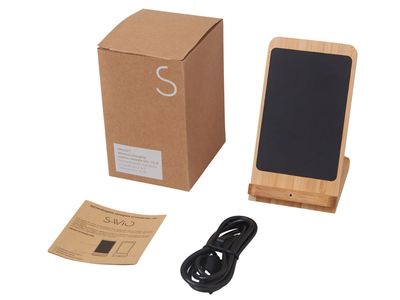 Знакомьтесь с инновационным беспроводным зарядным устройством на 15 Вт — созданным для комфорта, стиля и экологичного образа жизни. Его корпус сочетает натуральный бамбук и переработанный ABS-пластик, даря не только приятную на ощупь текстуру, но и выражая вашу заботу об окружающей среде. Уникальная конструкция с двумя центрами зарядки позволяет заряжать смартфон как в вертикальном, так и в горизонтальном положении — идеально для просмотра видео, видеозвонков или навигации во время зарядки. А встроенная белая подсветка с возможностью нанесения логотипа превращает зарядку в персонализированный аксессуар: ваш бренд или имя мягко светится, добавляя атмосферу уюта и премиальности.