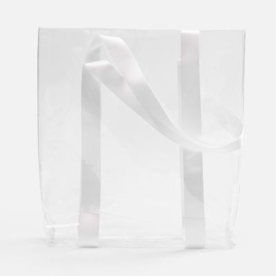 Прозрачные сумки никогда не выйдут из моды. А цветные ручки легко впишутся в брендбук и точно передадут настроение, которое хотелось бы транслировать.