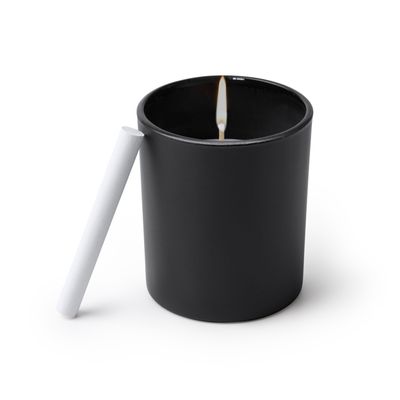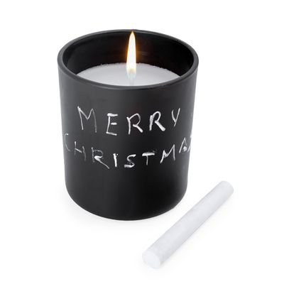 Ароматизированная свеча King в круглой керамической банке черного цвета. В комплекте белый мелок для записей.