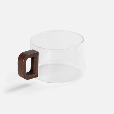 Чайная пара Arbori с чашкой из прочного боросиликатного стекла в сочетании с элементами из ореха станет изюминкой домашней или офисной подачи горячих напитков.