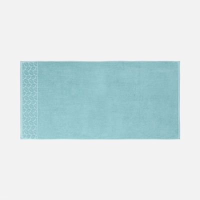 Светлые оттенки в сочетании с широким бордюром с рельефным растительным узором придают полотенцу элегантный и свежий вид.