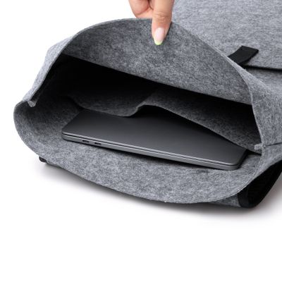 Ролл-топ рюкзак TAIPEI сделан из переработанного фетра.Основное отделение застегивается регулируемой по длине тесьсой на застёжку-фастекс. Внутри карман для ноутбука.На передней стенке плоский открытый карман.Плечевые ремни регулируются по длине