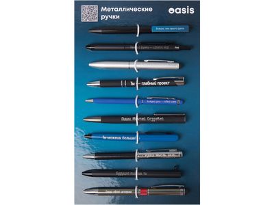 Промо-сет металлических ручек — это презентационный комплект, включающий 10 уникальных моделей с несколькими вариантами нанесения: УФ-печать, гравировка.