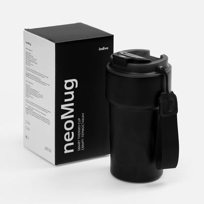 neoMug показывает температуру напитка на сенсорном ЖК-дисплее — точные данные собирает встроенный в крышку датчик.