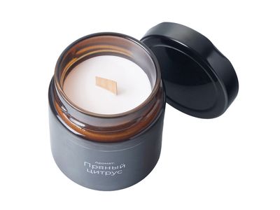 Состав: соевый, кокосовый и очищенный парафин (менее 6% от массы свечи), ароматическая отдушка, деревянный фитиль.