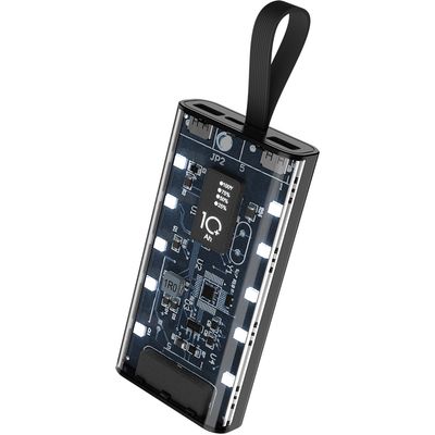 Фишкой этого пауэрбанка является встроенная подсветка: при включении он активирует светодиоды, которые мягко светятся через прозрачную крышку, создавая завораживающее световое шоу в нескольких режимах. Это делает устройство не только практичным, но и привлекательным элементом вашего образа, особенно в темное время суток.
