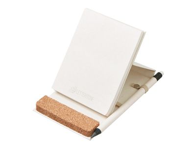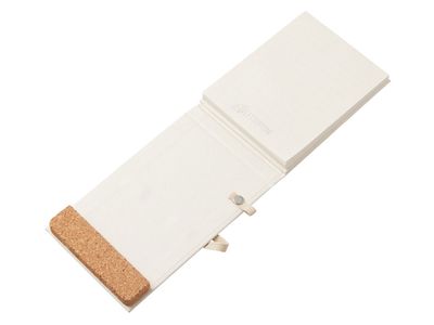 Удобный блокнот-репортер из переработанных тетрапаков с фиксирующей резинкой и петлей для ручки. Пробковое основание может как фиксировать блокнот в стоячем положении, так и стать подставкой для телефона на рабочем столе.