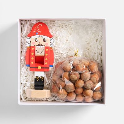 Могут ли чудеса случаться как по щелчку? Конечно! Праздничный набор позволит окунуться в сказочный мир детства. В аккуратной деревянной коробочке лежит настоящий орехокол — Щелкунчик, персонаж новогодней волшебной истории. С лесными орехами он справляется на раз.
