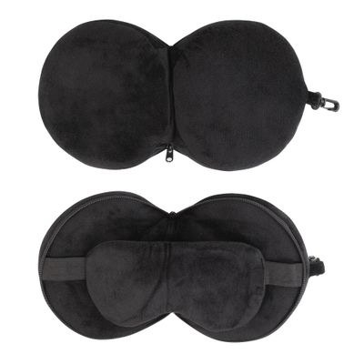 "2Go" - когда дорога в радость! Компактный аксессуар 2в1: маска и подушка для путешествий легко поместится в сумке или рюкзаке, можно использовать карабин для крепления снаружи. Практичный черный цвет.