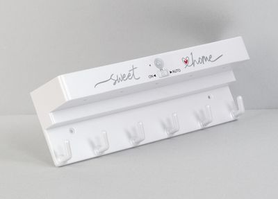 Шесть надежных крючков позволят аккуратно развесить ключи, сверху расположена удобная полочка. Универсальный белый цвет ключницы для любого интерьера, красивый перламутровый металлик. Рекомендуем обратить внимание на гравировку твердотельным лазером (L2).
