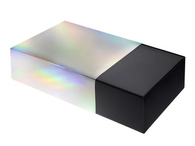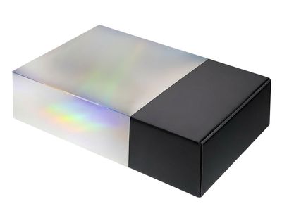 Подарочная коробка из прочного микрогофрокартона, кашированная бумагой с матовой ламинацией, выглядит элегантно и надёжно защищает содержимое. Новогодний голографический шубер с мерцающими серебристыми переливами придаёт ей праздничный блеск и делает каждый подарок по-настоящему особенным.