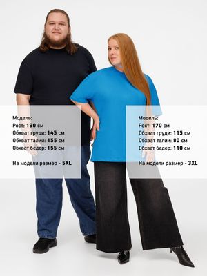 Базовая футболка унисекс прямого силуэта без боковых швов (размеры XS–4XL) или с боковыми швами (размеры 5XL–6XL).