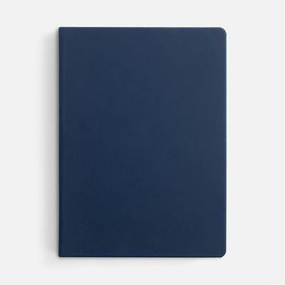 Ежедневник с твердой обложкой и тонированным обрезом, выполнен из материала Soft Touch, синий НН, дополнен ляссе в цвет обложки.