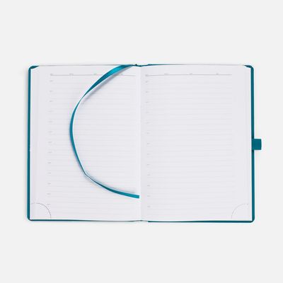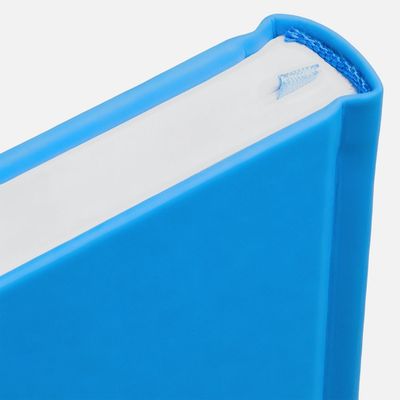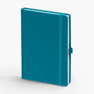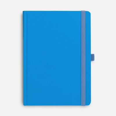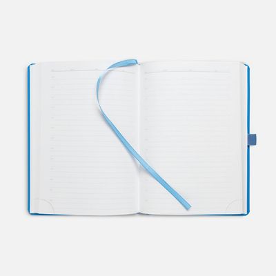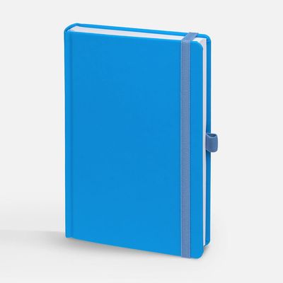 Ежедневник с твердой обложкой без поролона, выполнен из материала Soft Touch Ultra, синий НН, дополнен резинкой шириной 1 см, петлей-резинкой для ручки, капталом и ляссе синего цвета.