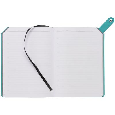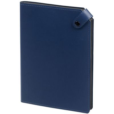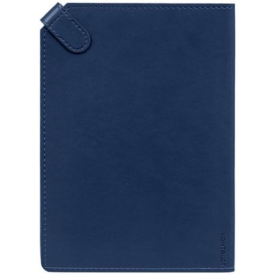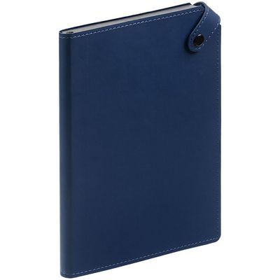 Ежедневник с гибкой обложкой и тонированным обрезом. Выполнен из материала Latte, синий НН, дополнен черным ляссе.