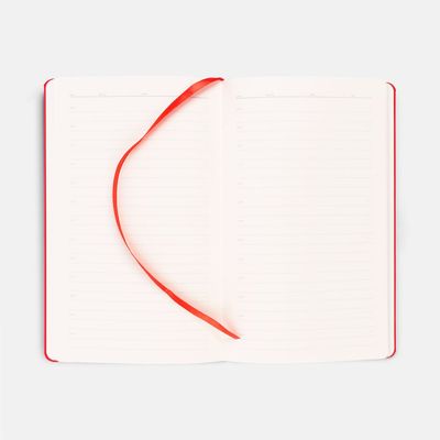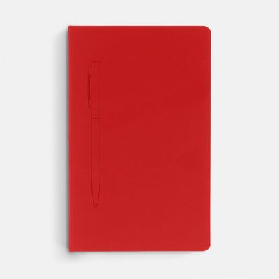 Ежедневник в твердой обложке, выполненной из материала Soft Touch Ultra, красный РР, дополнен цветным ляссе и магнитом, удерживающим ручку.