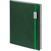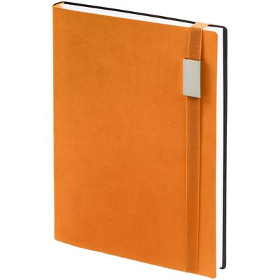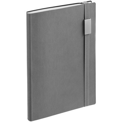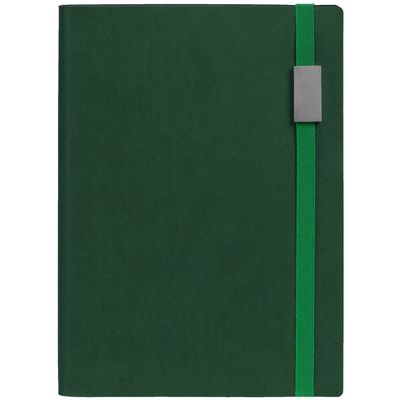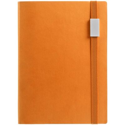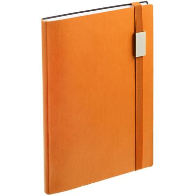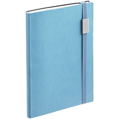 Ежедневник с гибкой обложкой выполнен из материала Brand, черный АА, и дополнен резинкой шириной 1 см с металлическим шильдом, капталом, ляссе черного цвета.