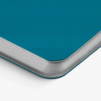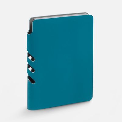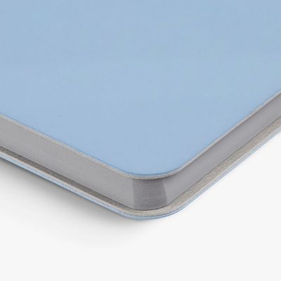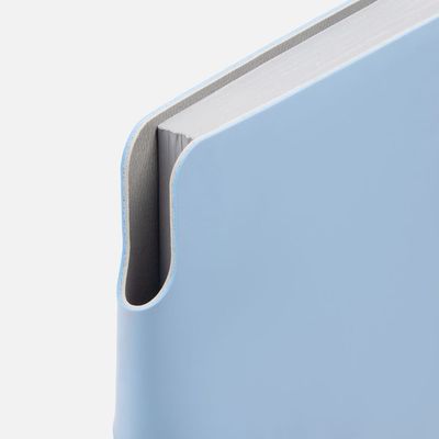 Ежедневник с гибкой обложкой выполнен из материала Soft Touch Ultra, голубой JJ и серого Latte (внутренняя часть обложки).
