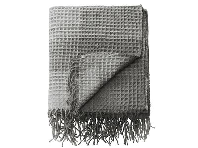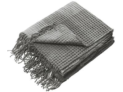 Теплый плотный плед из акрила, украшенный бахромой, имеет приятную на ощупь текстуру поверхности и создает атмосферу комфорта и уюта.