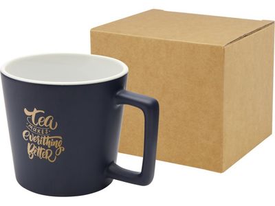 Керамическая кружка с современным дизайном и матовой отделкой. Объем 370 мл. Можно мыть в посудомоечной машине. Поставляется в упаковочной коробке из переработанного картона. Керамика.