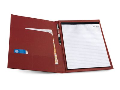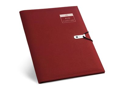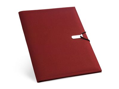 Папка A4 из 600D с застежкой на резинке. Папка имеет блокнот из 20 листов в линейку, 3 внутренних кармана и держатель для шариковой ручки (ручка не входит в комплект). 240 x 325 x 15 мм. Вид нанесения, рекомендуемый поставщиком: гравировка, трансфер.