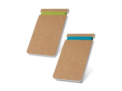 Блокнот формата B7 с 120 страницами без линовки из вторично переработанной бумаги и обложкой из картона. 85 x 125 мм