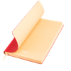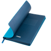Недатированный ежедневник Latte NEW выполнен в интересном цветовом решении: под нежной и теплой бежевой обложкой спрятан яркий голубой срез, контрастирующий с основным цветом изделия. Форзац и нахзац матовые, в тон срезу. Обложка гибкая, из искусственной кожи, со скругленными уголками. Гладкий, слегка прорезиненный материал приятен на ощупь. Имеет мелкозернистый рисунок и легкий приглушенный блеск. Обложка не образует заломов, не расслаивается, устойчива к повреждениям. Страницы из гладкого шелковистого офсета со скругленными уголками. Приятны руке, комфортны в работе. Атласное голубое ляссе с легким отливом выполнено в тон форзаца. Ширина 6 мм. Общая тональность изделия контрастная, динамичная, с цветовыми акцентами.