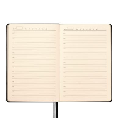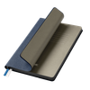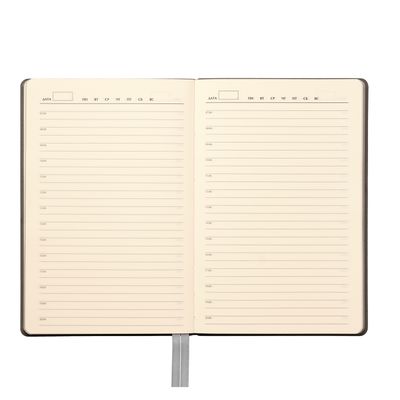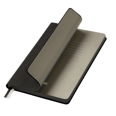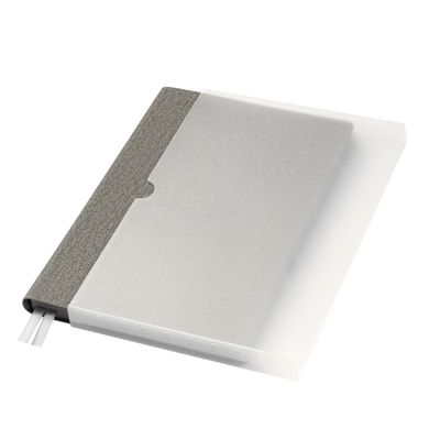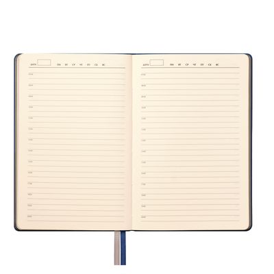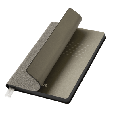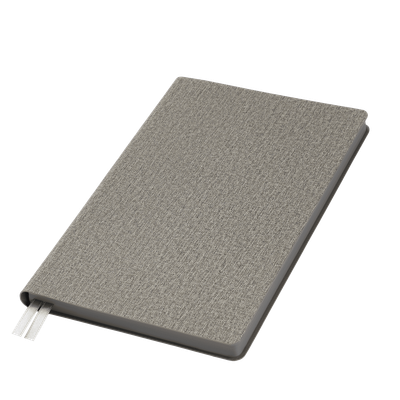 Недатированный ежедневник исполнен в природном приглушенном атмосферном настроении. Гибкая обложка из искусственной, слегка прорезиненной кожи со скругленными уголками. Рельефная фактура переплетного материала имитирует твид с характерным для этого вида шерстяной ткани мелким однородным плетением. Не блестит. Цвет – зеленый, насыщенный, с более темными и светлыми вкраплениями, образуемыми за счет рельефа. Форзац и нахзац матовые, однородного темно-серого цвета. Страницы со скругленными уголками кремового цвета из гладкого, слегка шелковистого офсета. Срез матовый, темно-серый. Двойное атласное ляссе составлено из лент зеленого и серого цветов, имеет легкий блеск. Ширина каждой ленты 6 мм.