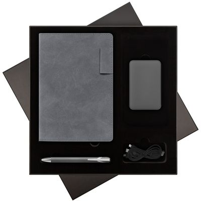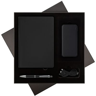 Подарочная коробка с ложементом для ежедневника, ручки и аккумулятора, черная (под съемные ложементы) +